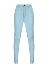Knee slit jeans are essential for any occasion. Featuring our sky blue denim skinny jeans with a mid-rise fit. Style it with a crop top and heels for a night with the girls.