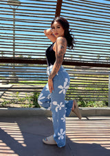 Amp up your denim collection with Trendsetter Ave’s newest jeans. Meant to keep you fresh and on-trend this season. Featuring our new Daisy High Waisted Jeans. These classic high-rise jeans come in a light blue wash and are finished with an all-over Daisy stamp print. Pair with a crop top and sneakers for a chill night, or style them with heels for a day out with the girls.