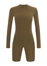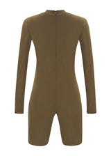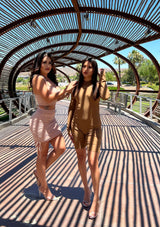 Tan is the must-have shade of the season. Perfect for serving monochromatic fall looks. Featuring our figure flattering bodycon romper with long sleeves. Keeps you on trend and warm for those cold nights out - what's not to love? Pair it with heels and your favorite coat for a look you won't regret.